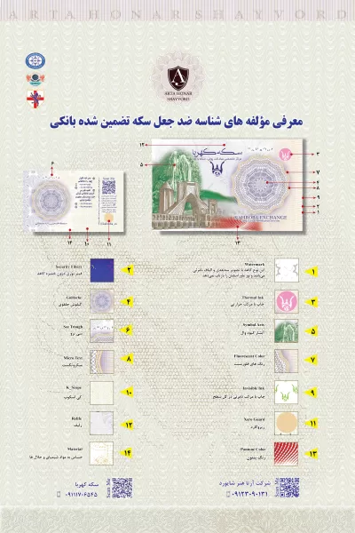 مولفه های امنیتی در دو سطح در پک سکه طلای آرتا هنر شایورد اعمال می شوند؛ مرحله نخست در چاپ کاغذ، با بهره گیری از ویژگی های امنیتی منحصر به فرد شامل کاغذ واتر مارک انحصاری، مرکب امنیتی، طراحی امنیتی، فلورسنتهای مرئی و نامرئی، فیبر نوری و … به هیچ عنوان امکان جعل آنها وجود ندارد. خصوصا آنکه در کنار همه این مولفه ها کاغذ واترمارک ما با لوگوی اختصاصی و تحت لیسانس معتبر قرار دارد که به هیچ عنوان جاعل به آن دسترسی ندارد.