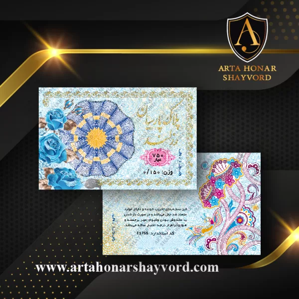 مولفه های امنیتی در دو سطح در پک سکه طلای آرتا هنر شایورد اعمال می شوند؛ مرحله نخست در چاپ کاغذ، با بهره گیری از ویژگی های امنیتی منحصر به فرد شامل کاغذ واتر مارک انحصاری، مرکب امنیتی، طراحی امنیتی، فلورسنتهای مرئی و نامرئی، فیبر نوری و … به هیچ عنوان امکان جعل آنها وجود ندارد. خصوصا آنکه در کنار همه این مولفه ها کاغذ واترمارک ما با لوگوی اختصاصی و تحت لیسانس معتبر قرار دارد که به هیچ عنوان جاعل به آن دسترسی ندارد.